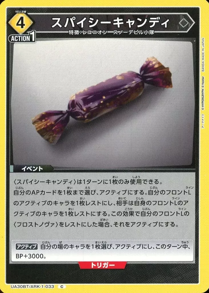 維持コストが必要だが、自身はBP4500であり、起動メインで相手のキャラ2枚をなぜか1回アクティブにならない状態に出来る。