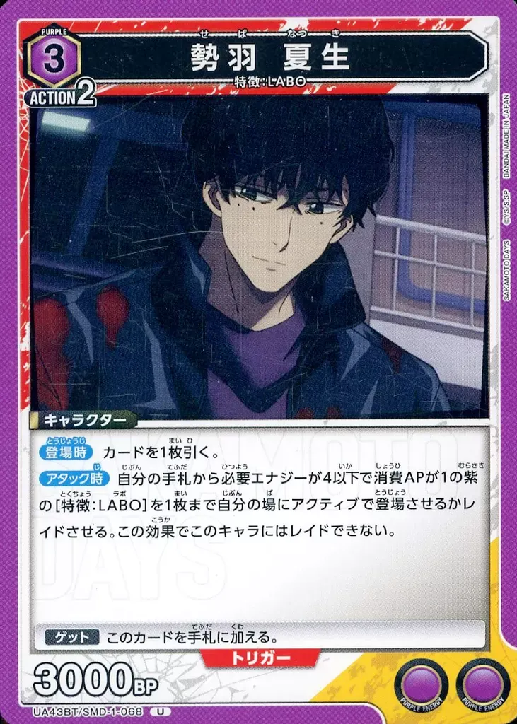 2エナジー発生でありながら、手札コストが必要だが、自分のキャラ1枚に「BP4000以上にブロックされない」を付与出来る。