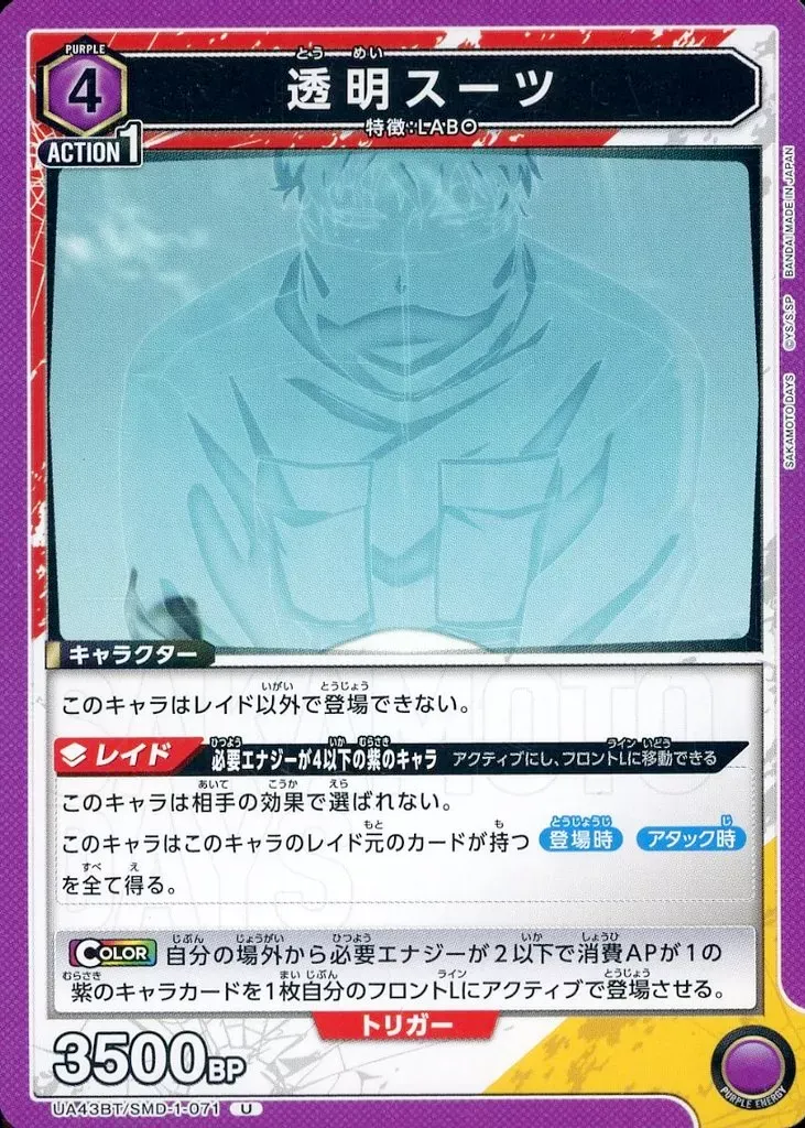 SRレイド〈勢羽 夏生〉と〈透明スーツ〉の、除去に対して強めのデッキだ。
