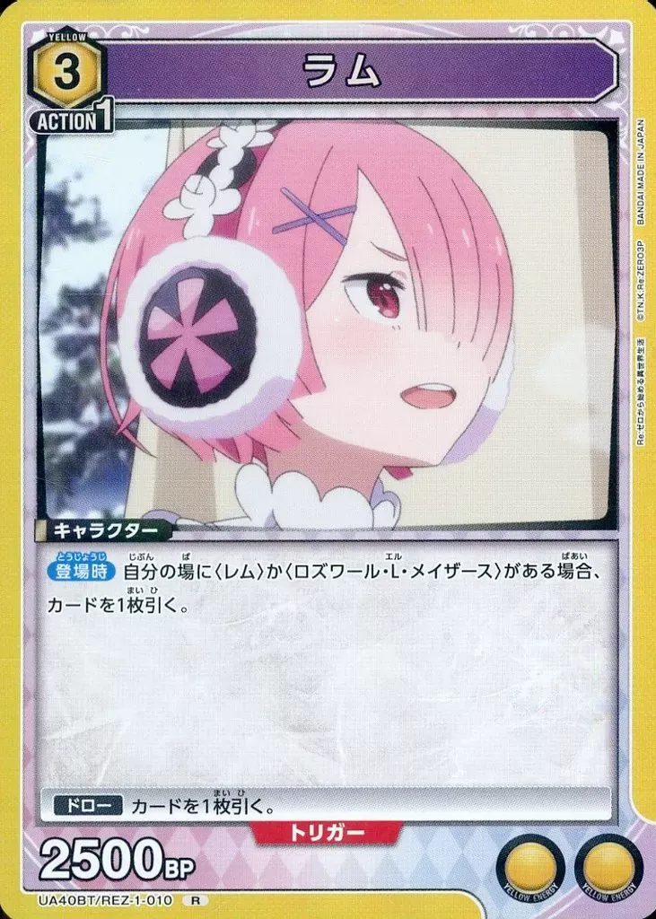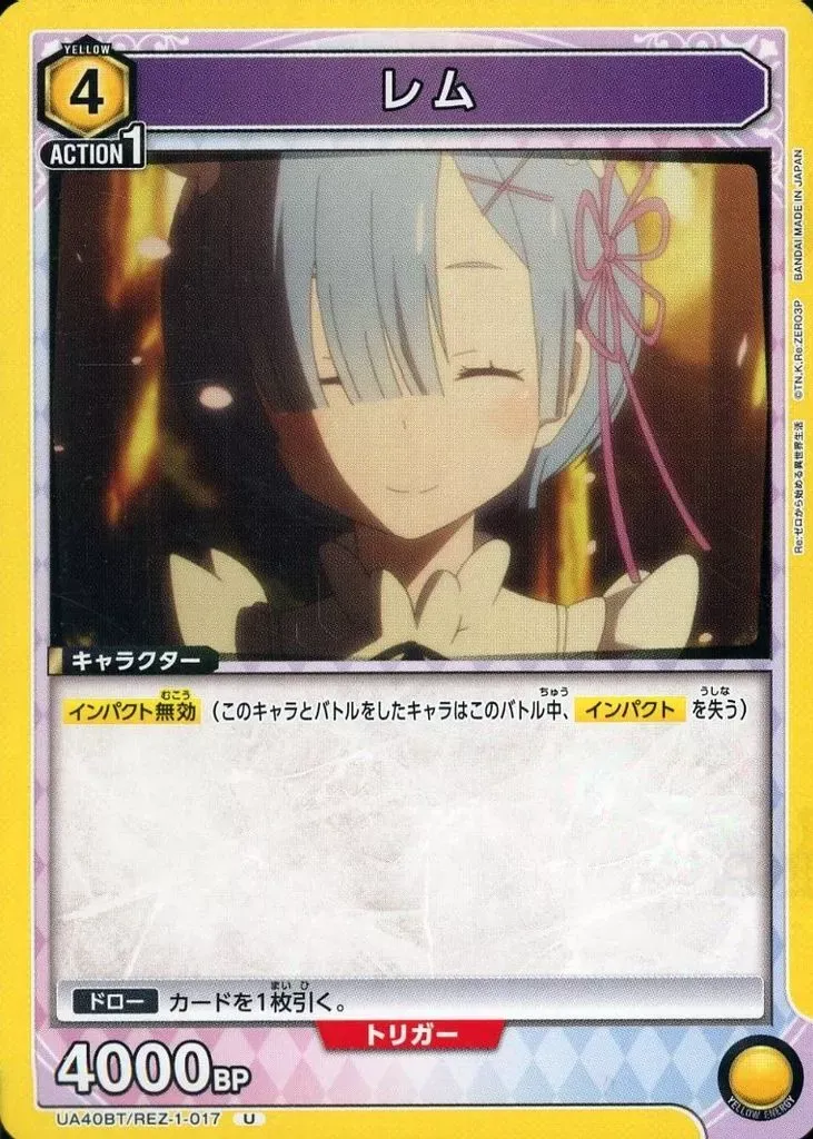 〈レム〉(REZ-1-020)が強力だが、効果の発動に条件があるため「特徴を持たないもの」から選ぶ必要かあるため注意!