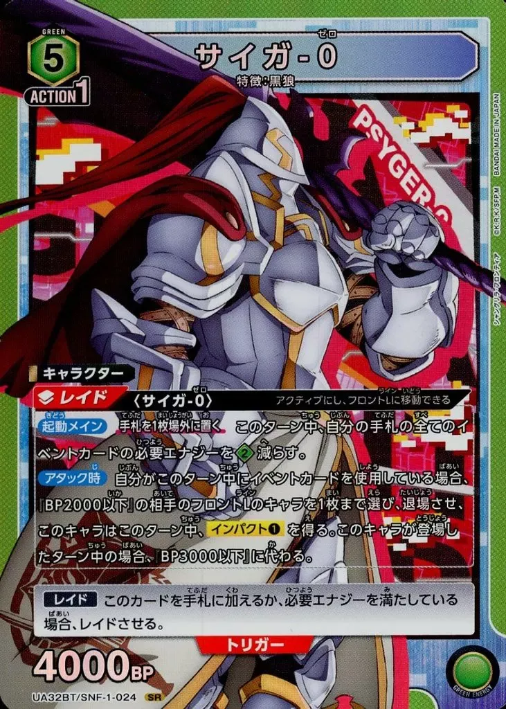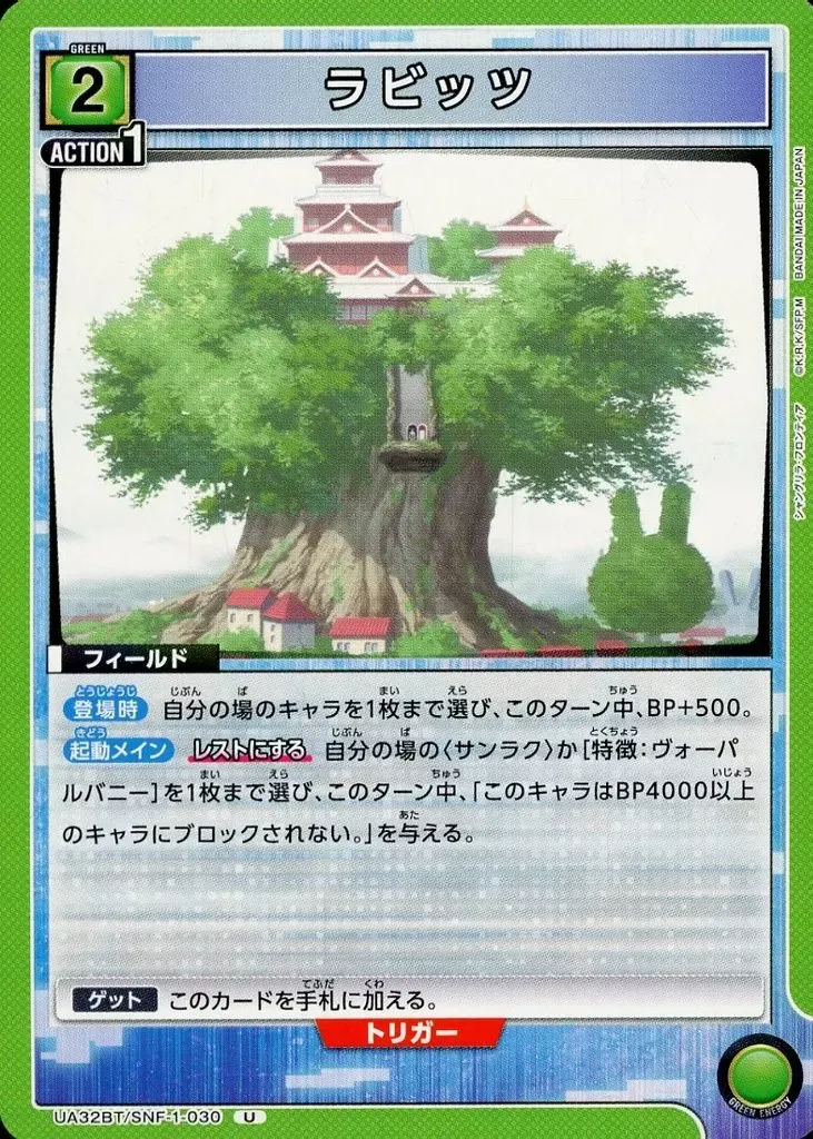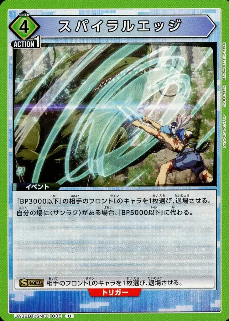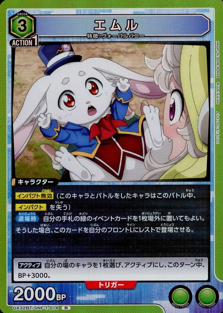 なかでも〈ヴォーパル魂〉(SNF-1-034)との組み合わせることで、狙い撃ちインパクト1、相手のBP2000以下のキャラを退場させる化け物になる。