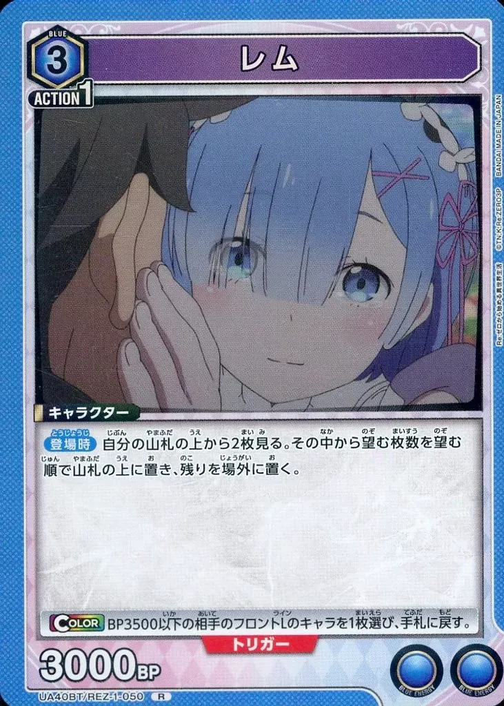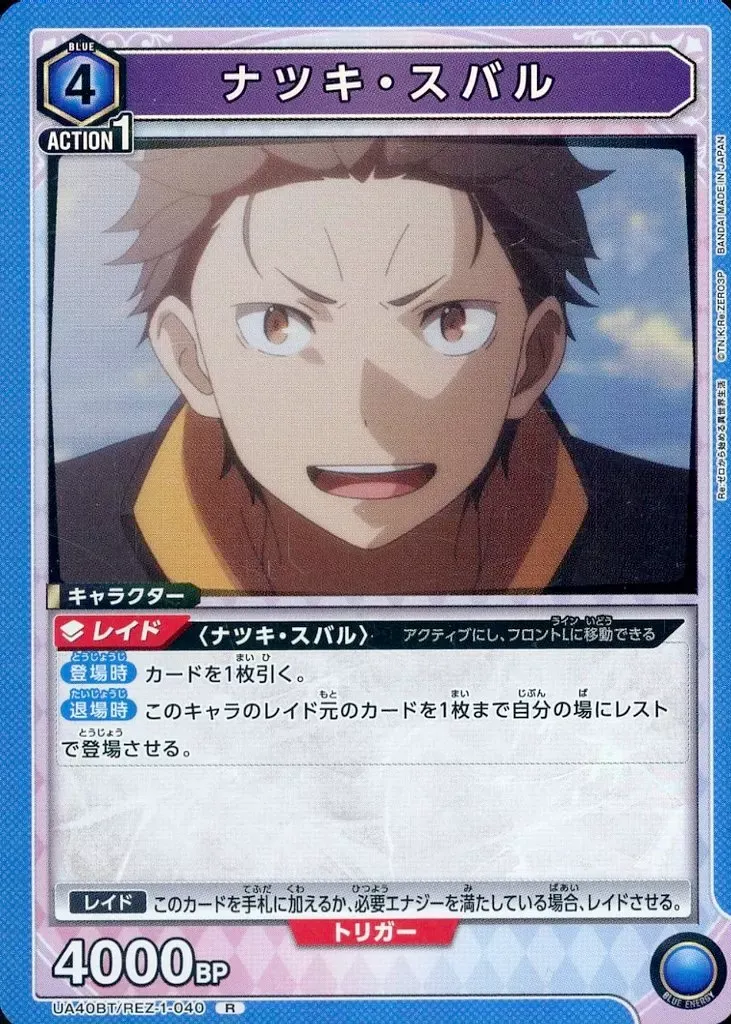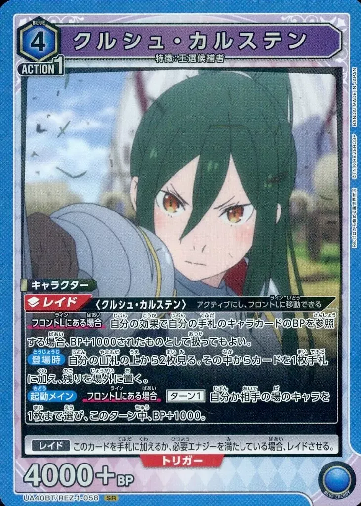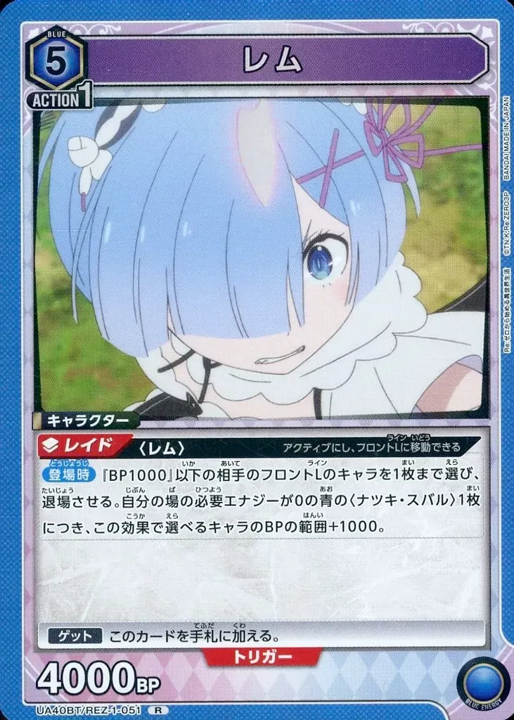 レイド時に場の0〈ナツキ・スバル〉の数だけ範囲の広がる除去を持つ。
