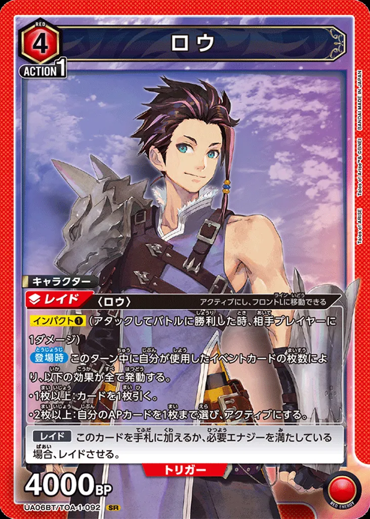 自身はインパクト1も持ちながら、登場ターンにイベントを2枚使っていればAPを1枚アクティブに出来るので、実質登場にAPを支払わないことになる。