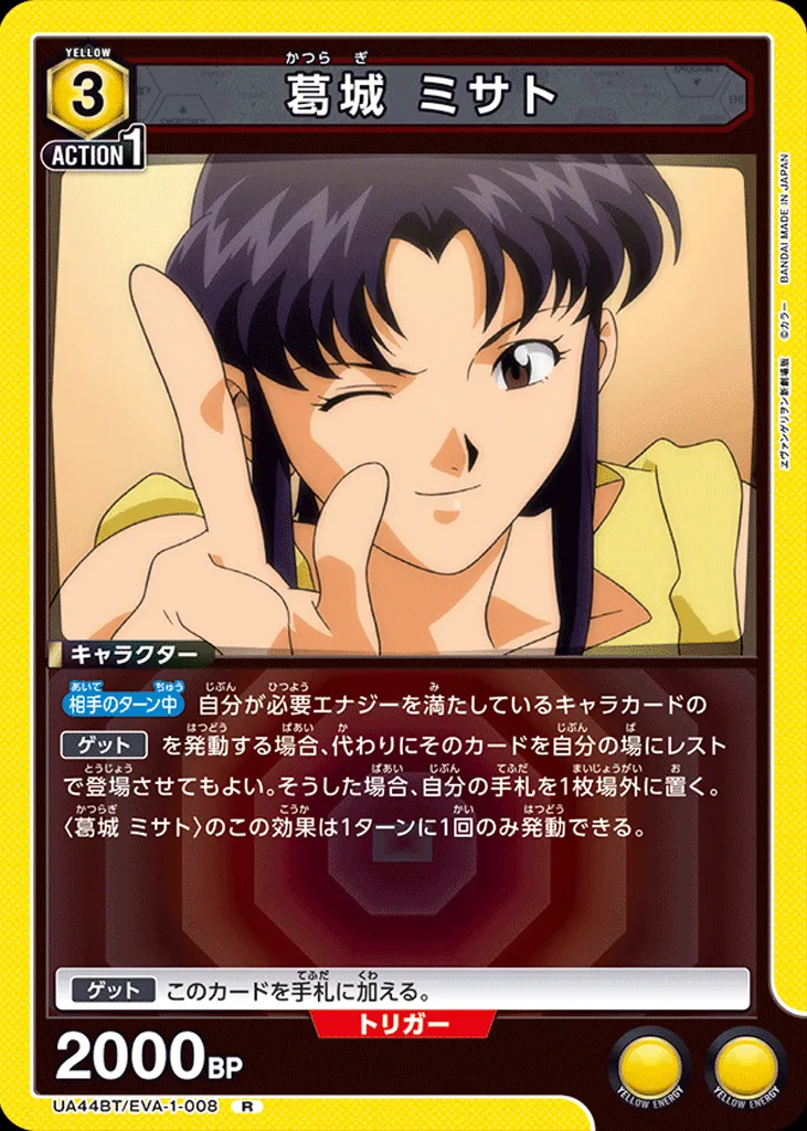 相手のターン中にゲットトリガーが発動する場合、必要エナジーを満たしていたなら、そのカードをレストで場に出して、手札を1枚捨てる。