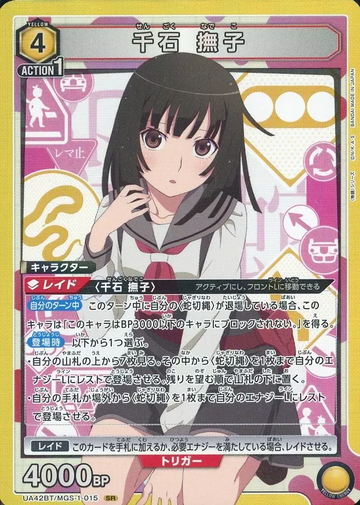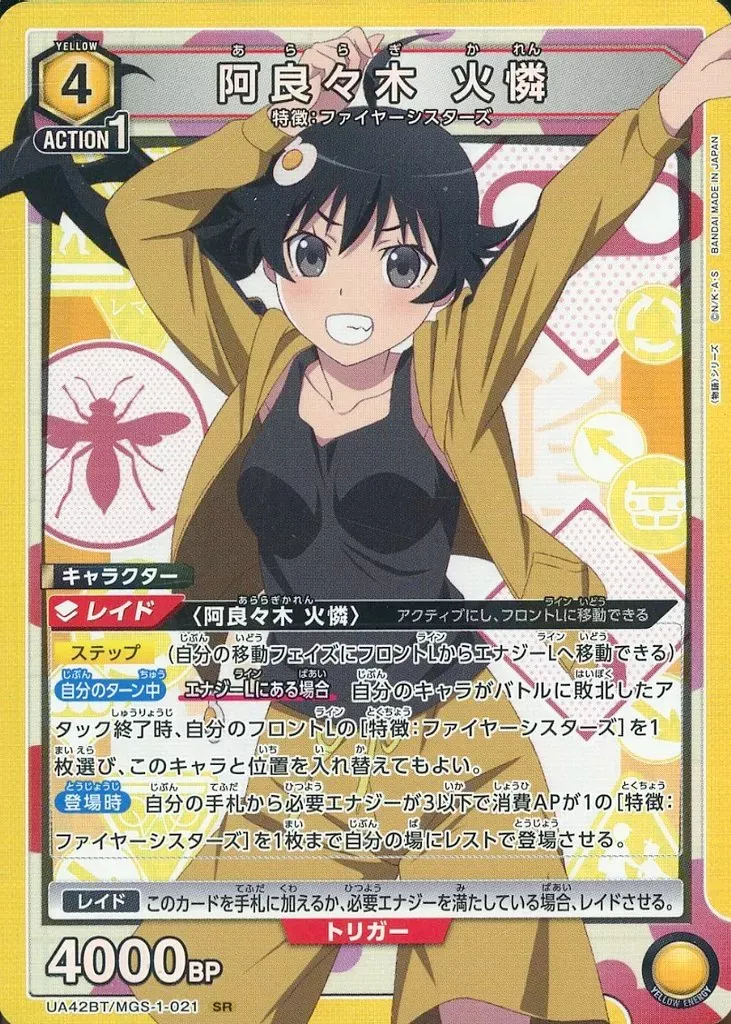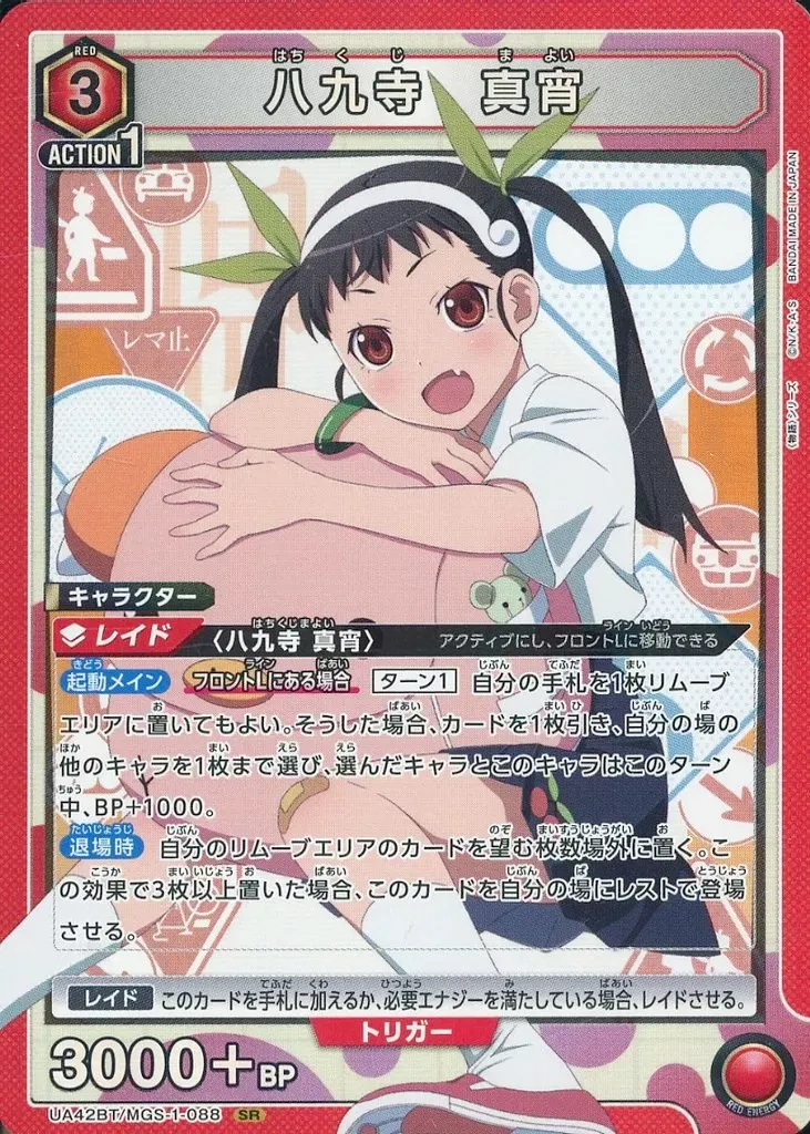 登場時に2エナジー以下の〈阿良々木 暦〉を場外から出せるので、レイドによる場の損失を減らせる。